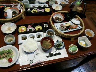 実は道路に面した外観はあまりそそられなかったのですが、中はさすが老舗。内庭も素敵です。部屋も化粧室ににおい袋がおいてあってほのかにお香の香りがただよっていました。ただ枕もとの灯りがなかったのが残念。お風呂は夜中に男女入れ替えで全部入ってきましたが、巨大な岩のくりぬき風呂や源泉風呂など楽しめました。