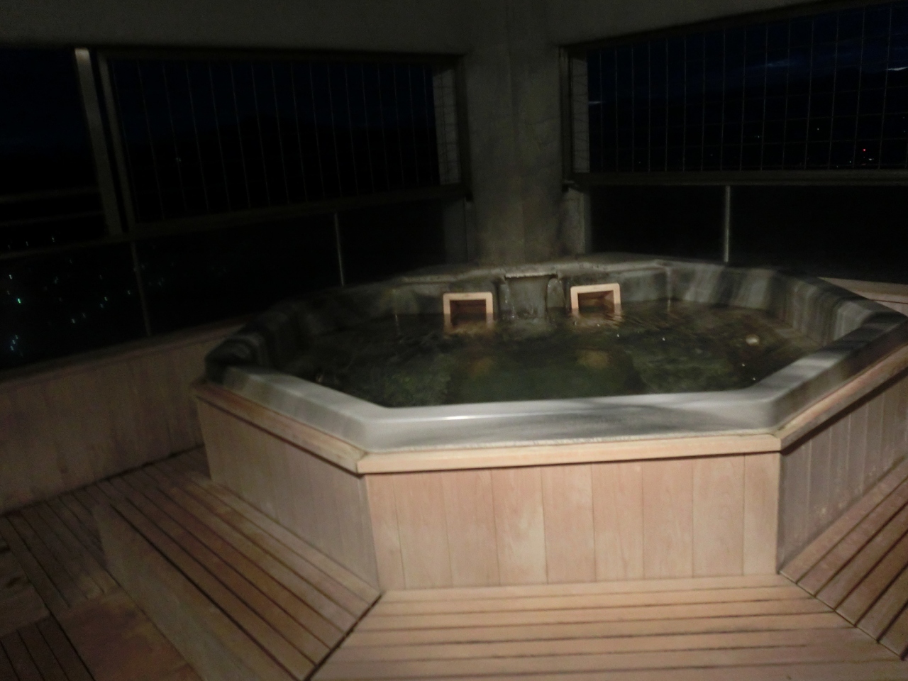 高台にあるので、翌朝の日の出時間が浴場を出たところに張り出してあり、その時間に行くと日の出をお風呂から見ることができます。