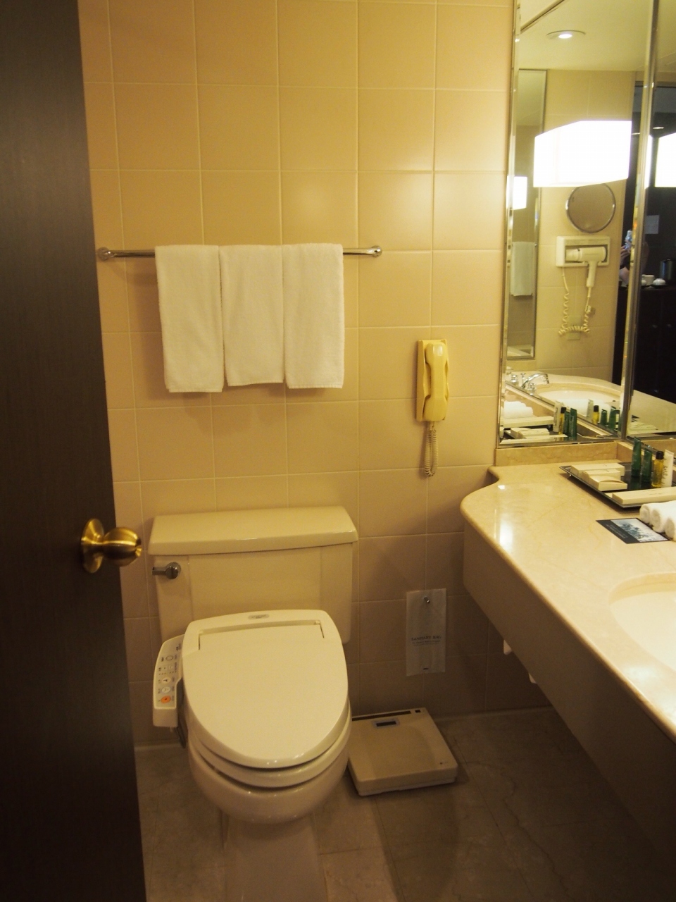 こちらホテル、ドライヤーが化粧室備え付けなんですね…