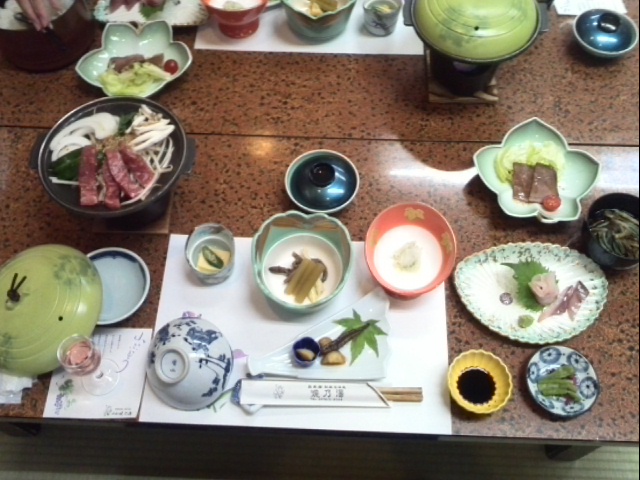 白川郷、高山観光の際に利用しました。夕食にはローストビーフ、陶板焼きの2品の飛騨牛をはじめ、そば、天ぷら、塩焼き等少しずついろんな物があり、食後にアイス、コーヒーもあって満足です。温泉は露天風呂が二箇所ありましたが、お湯の温度がかなり熱くとても入れる温度ではありませんでした。朝は調節してくれてあったのか、ぬるめになっていたので、入る事が出来ました。露天風呂は貸切が出来るので、ゆっくり入れていいと思います。