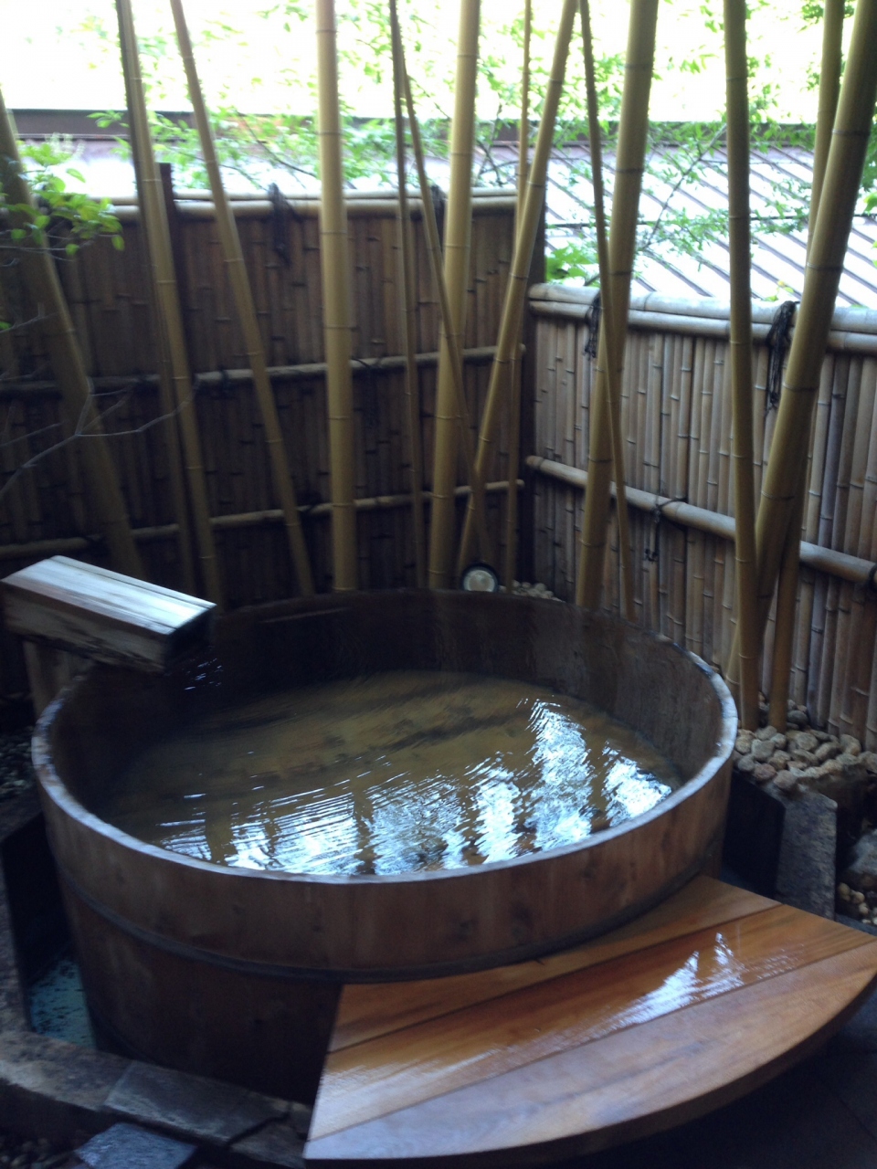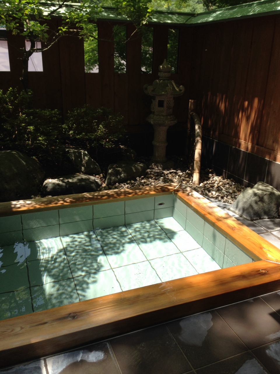 一通りお部屋のチェックをしてから、早速貸切露天風呂に向かいます。3つの貸切露天風呂は予約制ではなく、あいていれば何度で無料で入れるシステムです。面倒がなくて無料なので嬉しいですが、タイミングが悪いと、なかなか入りたいお風呂に入れなくなってしまうので、ちょっと意見が分かれそう。