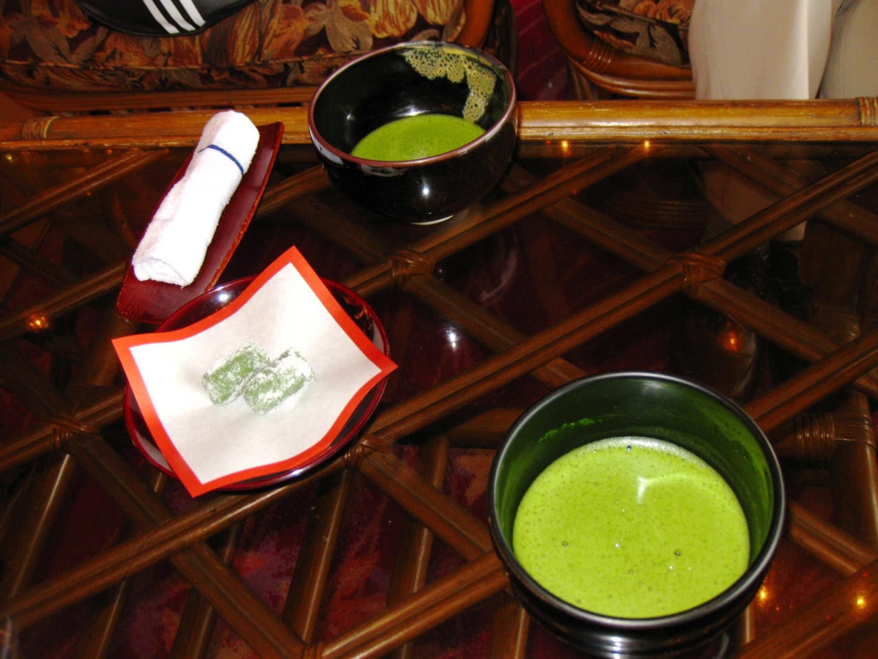 旅館に着くと抹茶とお菓子で迎えてくれました。