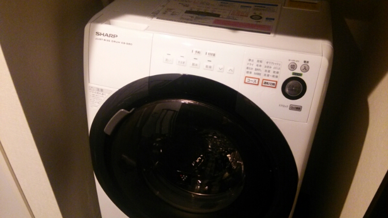 そして入り口付近にはSHARP製のドラム式洗濯機。