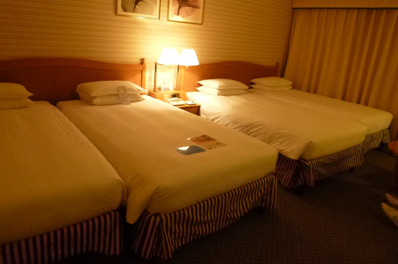 夜10時半ごろにへとへとで着いたら、TDL帰りの人のチェックインの列には閉口しましたが、どうせ寝るだけだしと、一番安いセミダブルとソファーベッドの部屋だったのが