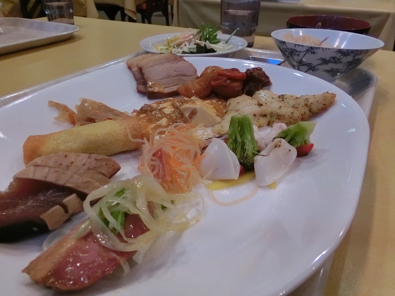 和洋中いろいろ選べて、特に天ぷらやステーキはライブキッチン方式(目の前で揚げたり焼いてくれる)。