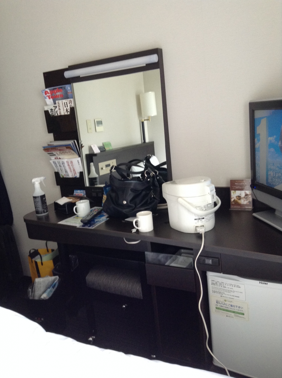 部屋はとても狭く、荷物の出し入れにも苦労しました。東横インは仕事でよく利用していましたが、価格ではアパが倍なのに、東横インよりも狭くて不快な部屋の造りです。これで、2万円近くとられるとは、ぼったくりです。おまけに、ほとんど繋がらないフリーWifi。