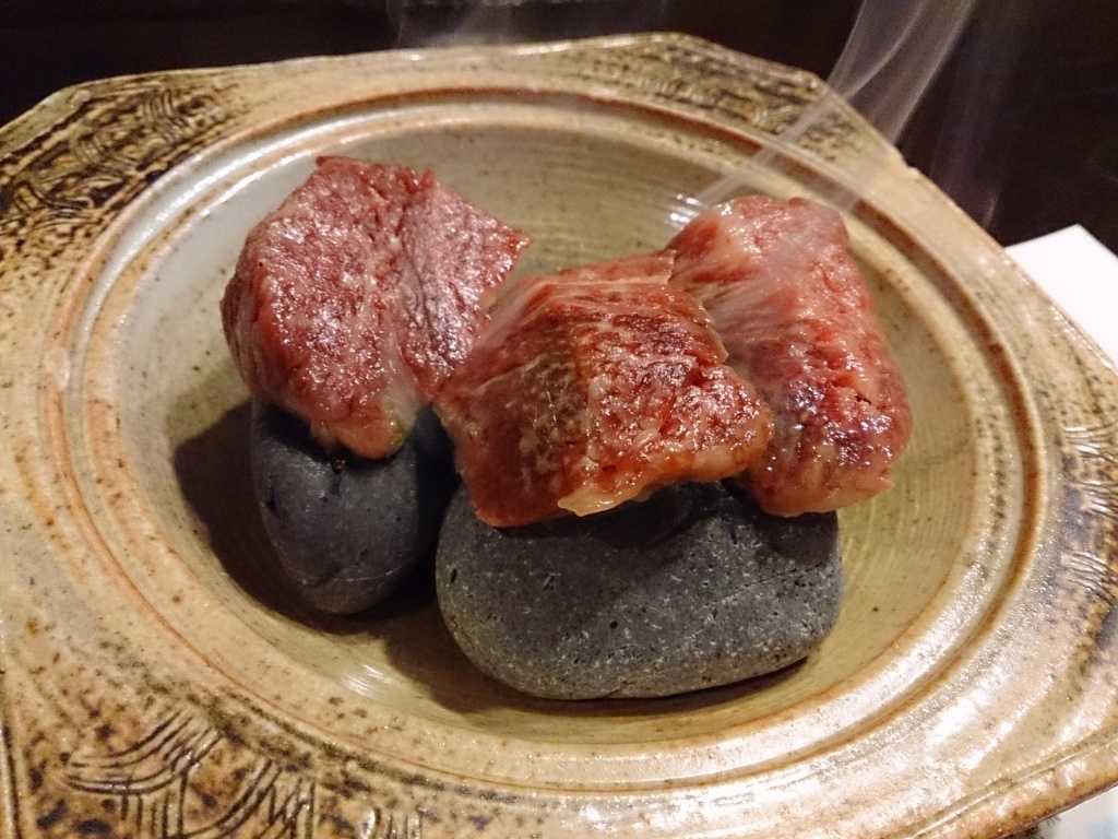 新潟県産A4和牛の石焼き。食事は個室でいただける。