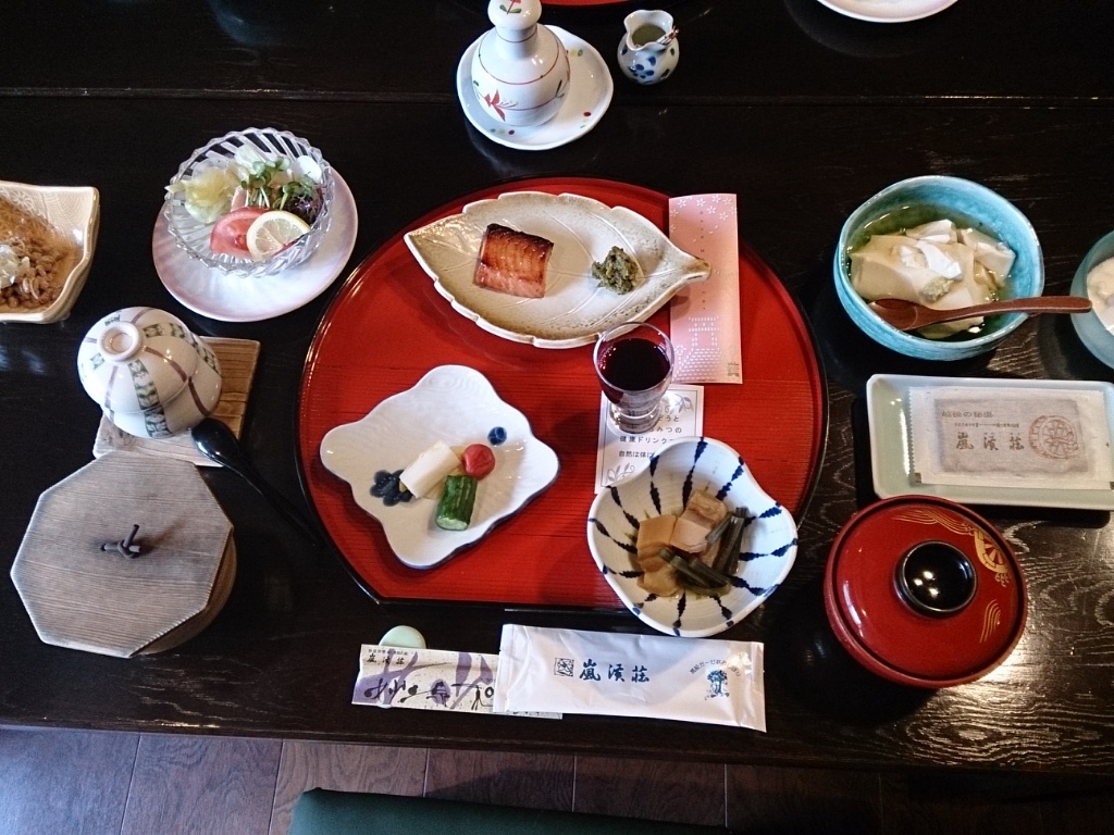 驚いたのは、お料理がとてもおいしかったこと。地元の食材をふんだんに使った、染み深いお料理の数々が並び、夜の「こいの洗いの清流仕立て」は臭みがまったくなく、コリコリとした食感が絶品。量も品数も十分にあり、とてもおいしくいただけました。
