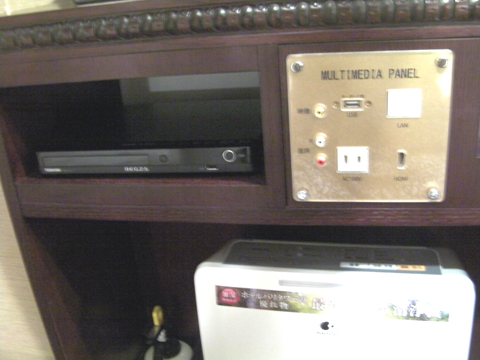 設備は空気清浄機/電子レンジ/DVDプレイヤー/USB端子(キーボード貸し出しあり)/フリーWIFI等がありました。