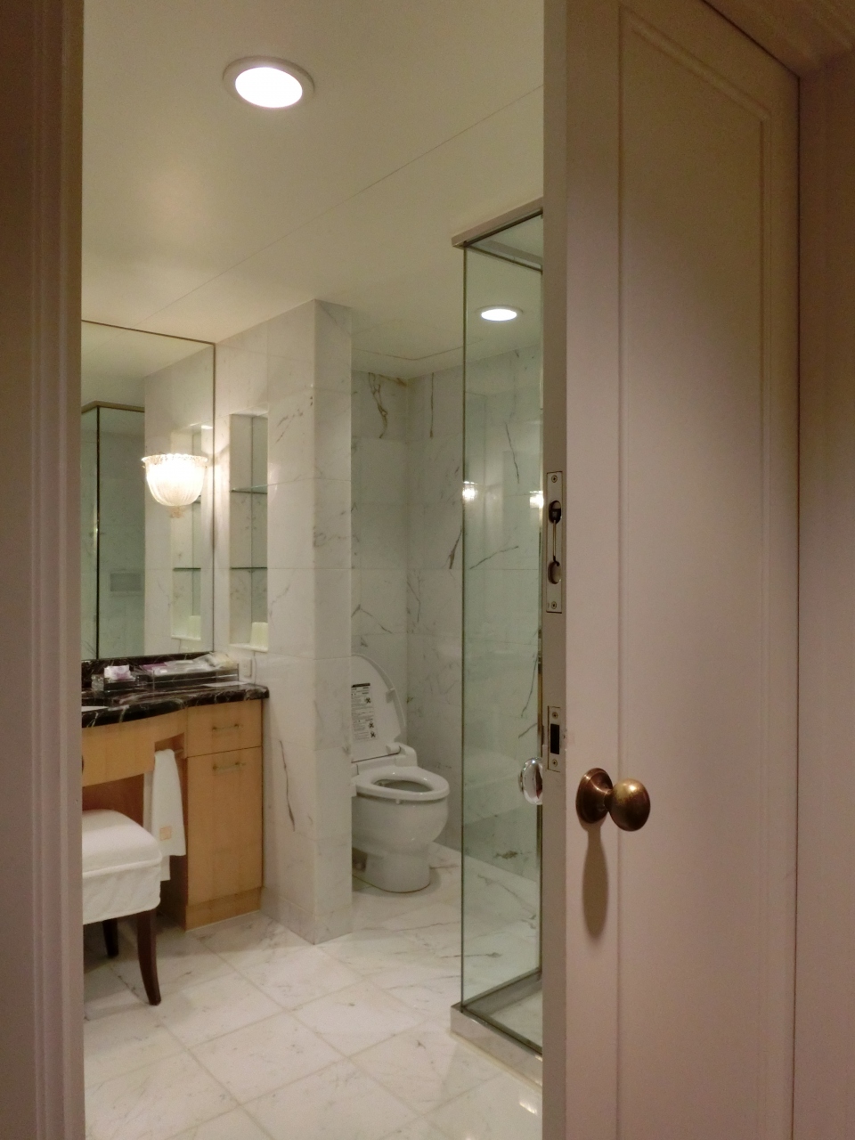 バスルームの扉は観音開きでシャワーブースもバスタブもあり、トイレは個室。