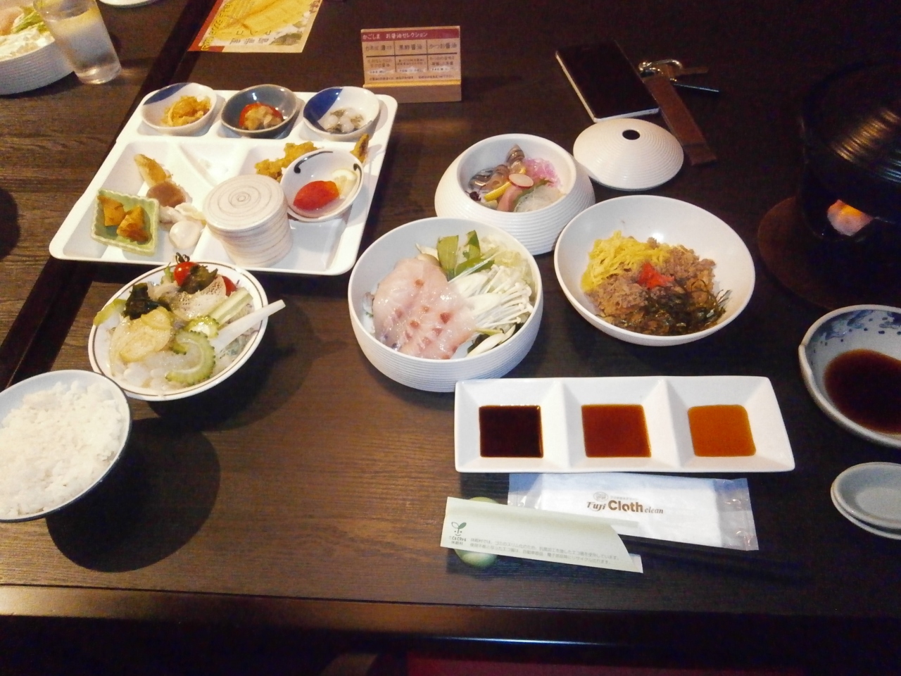 - 指宿のたまてばこ ハーフバイキング。一番安いプランでしたが、おいしくて、半分バイキングできる。デザートも豊富。満足です。