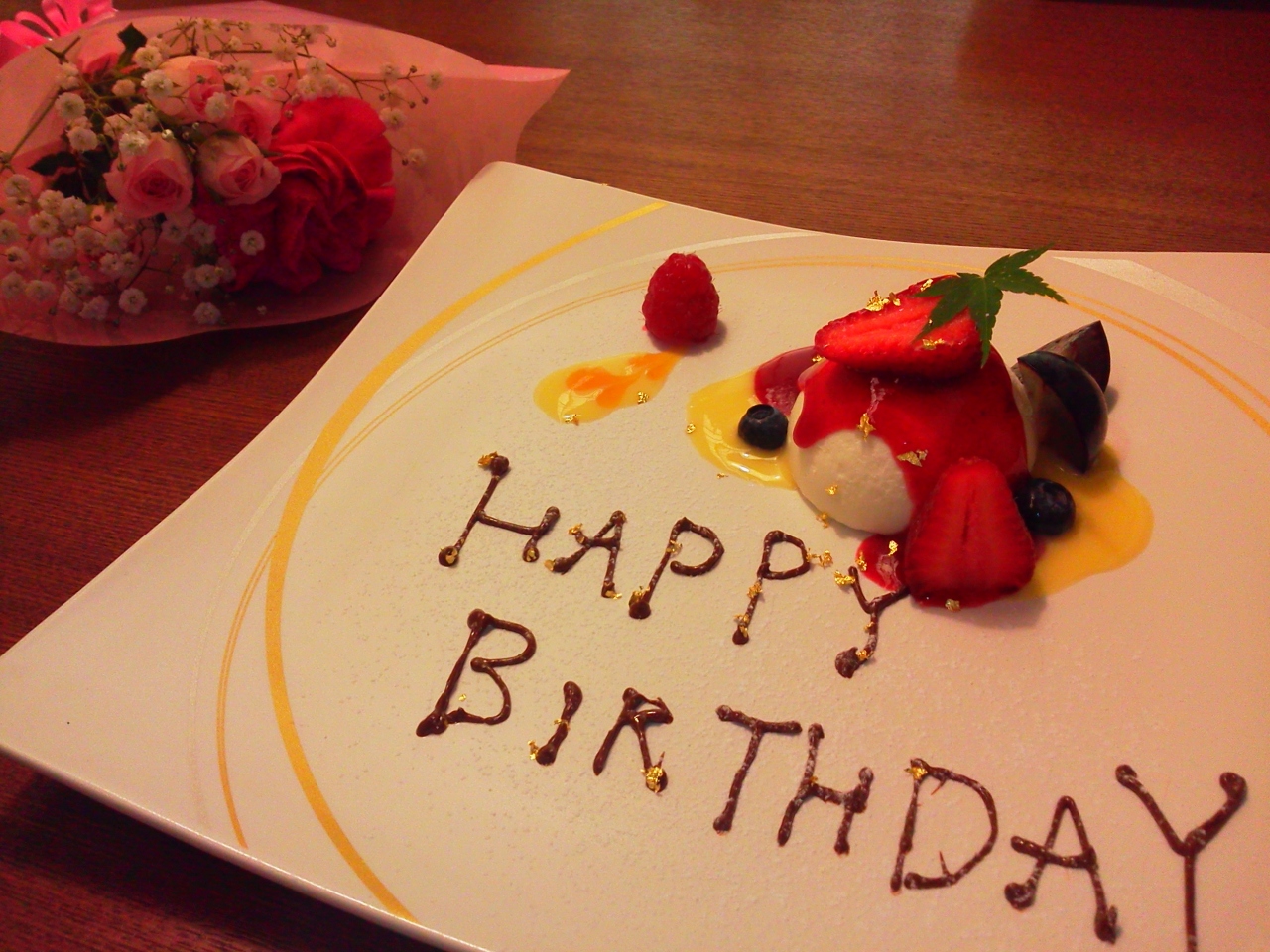 チェックイン時の旅の目的のアンケートに「誕生日のお祝い」を書いていたため、サプライズで花束とデザートに「happybirthday」の文字をチョコレートで書いて頂いて、とても嬉しかったです。