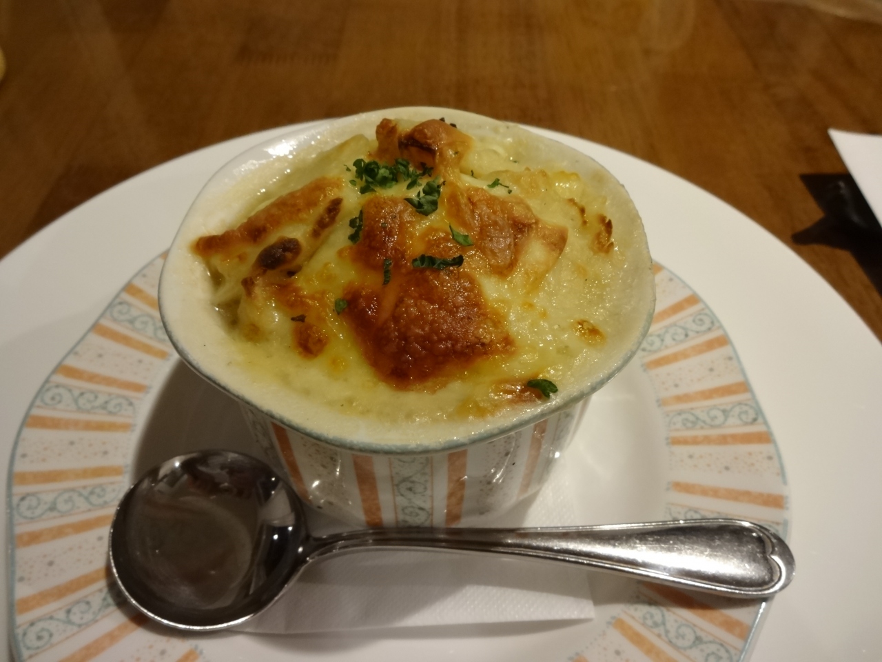 朝食白パンと夕食のグラタンスープは必ず食べないと!