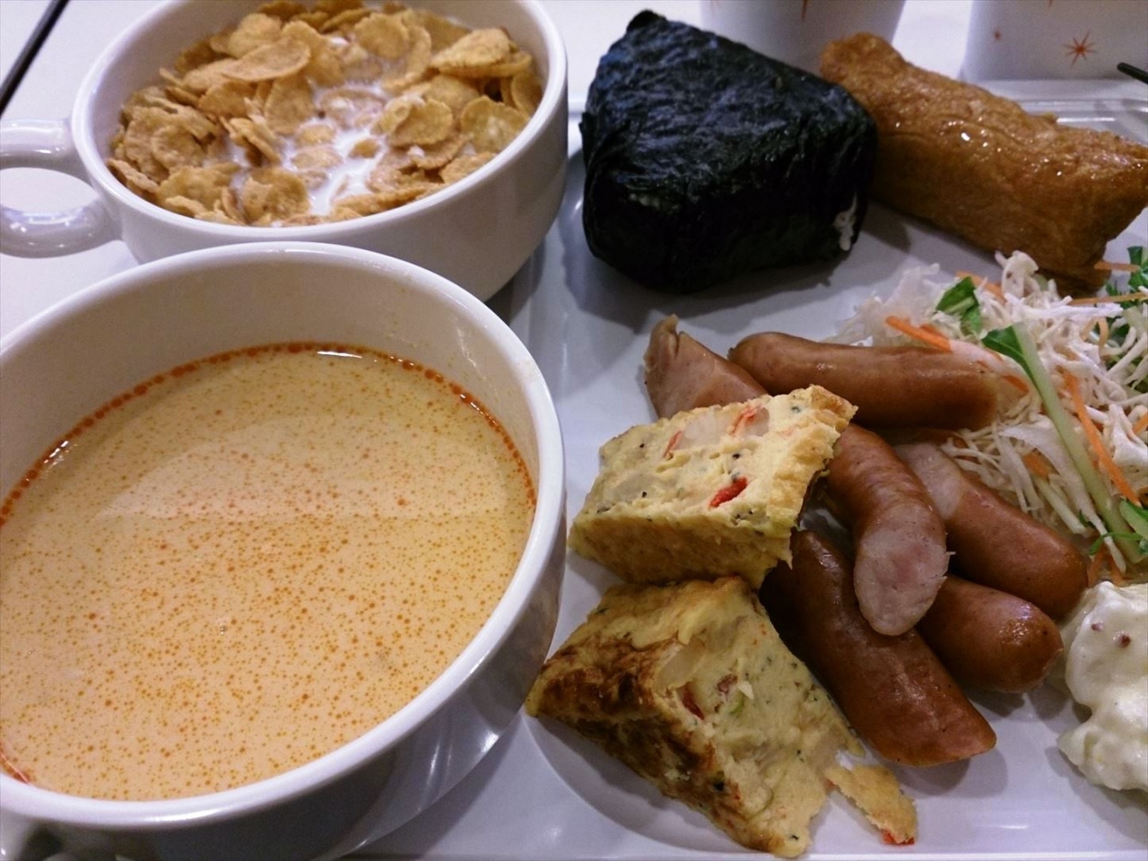 また無料朝食は他のコンフォートホテルと同じくおにぎりや稲荷寿司のほか、パンやコンフレーク、ソーセージなど充実していました