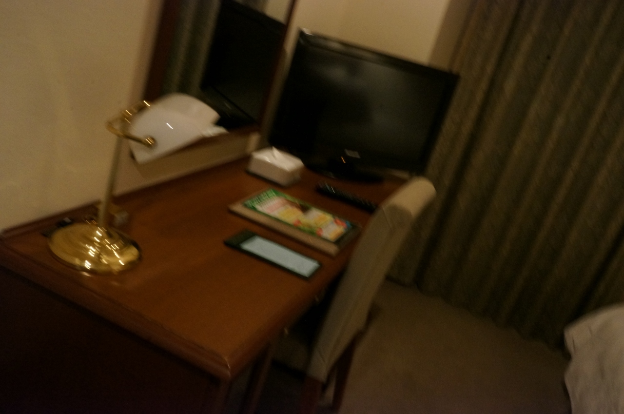 客室は思ったより広さもあり、大きなテーブル&鏡が付いていたので