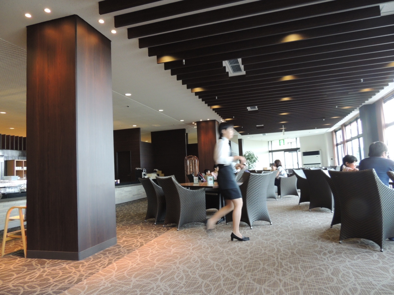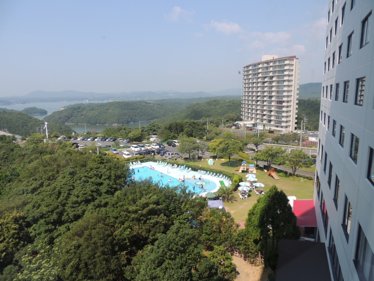時期的なこともあり、家族連れが多く宿泊していました。部屋は5階と6階にあり、エレベーターは3基ありましたが、地下一階の大浴場に行く客などで常に混んでおり、階段を利用することもしばしば。まあ、健康のためと割り切っていましたが、高齢の両親には無理をさせてしまいました。そして、その階段はまだ改装中のようで、壁紙は貼られていませんでした。温泉は利用客の多さの割にはやや手狭な感じでした。屋外のプールは結構広めで子供達も楽しんでいたようです。以上のことを踏まえると、設備は全体的には中の上程度です。オフシーズンはもっとガラガラかもしれません。