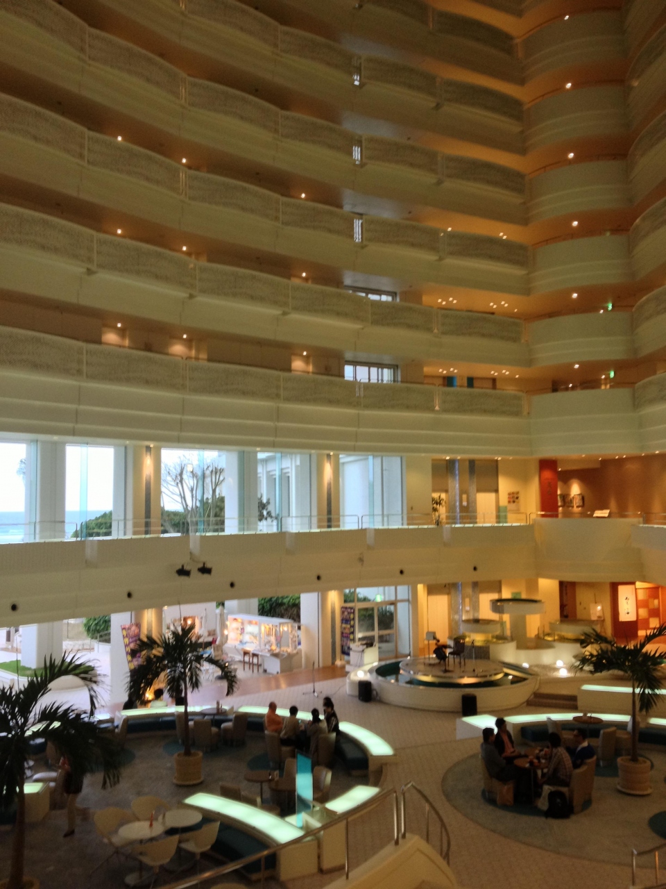 那覇市内から少し離れた場所にありますが周りは同じようなリゾートホテルが立ち並んでいました。ホテルの門から駐車場、そしてホテル玄関への道のりが長い!