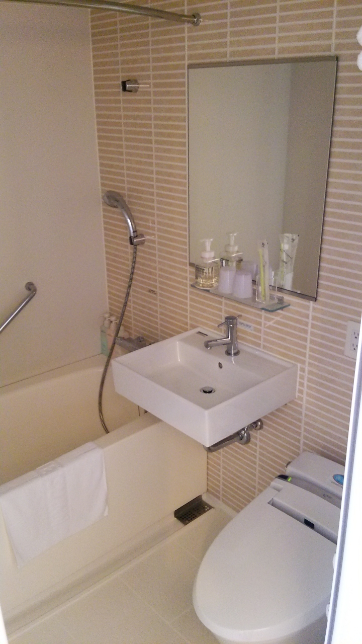 着替えとか置く場所がないので、便座に置くか離れて高い場所にあるタオル置き場に置くしかありません。