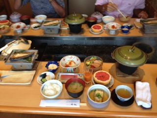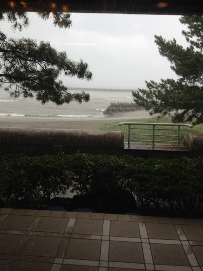 まず、駐車場で、係の方が車を移動して下さり、ロビーで目の前の海を見ながらお抹茶を頂きました。