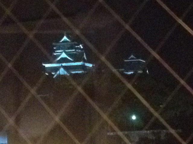 熊本城がすぐ近くにあります。夏の一時期は夜8時まで開城するようなので、特別な熊本城を見たい時にはぜひ調べて行かれることをお勧めします。閉城後も城自体がライトアップされていました。