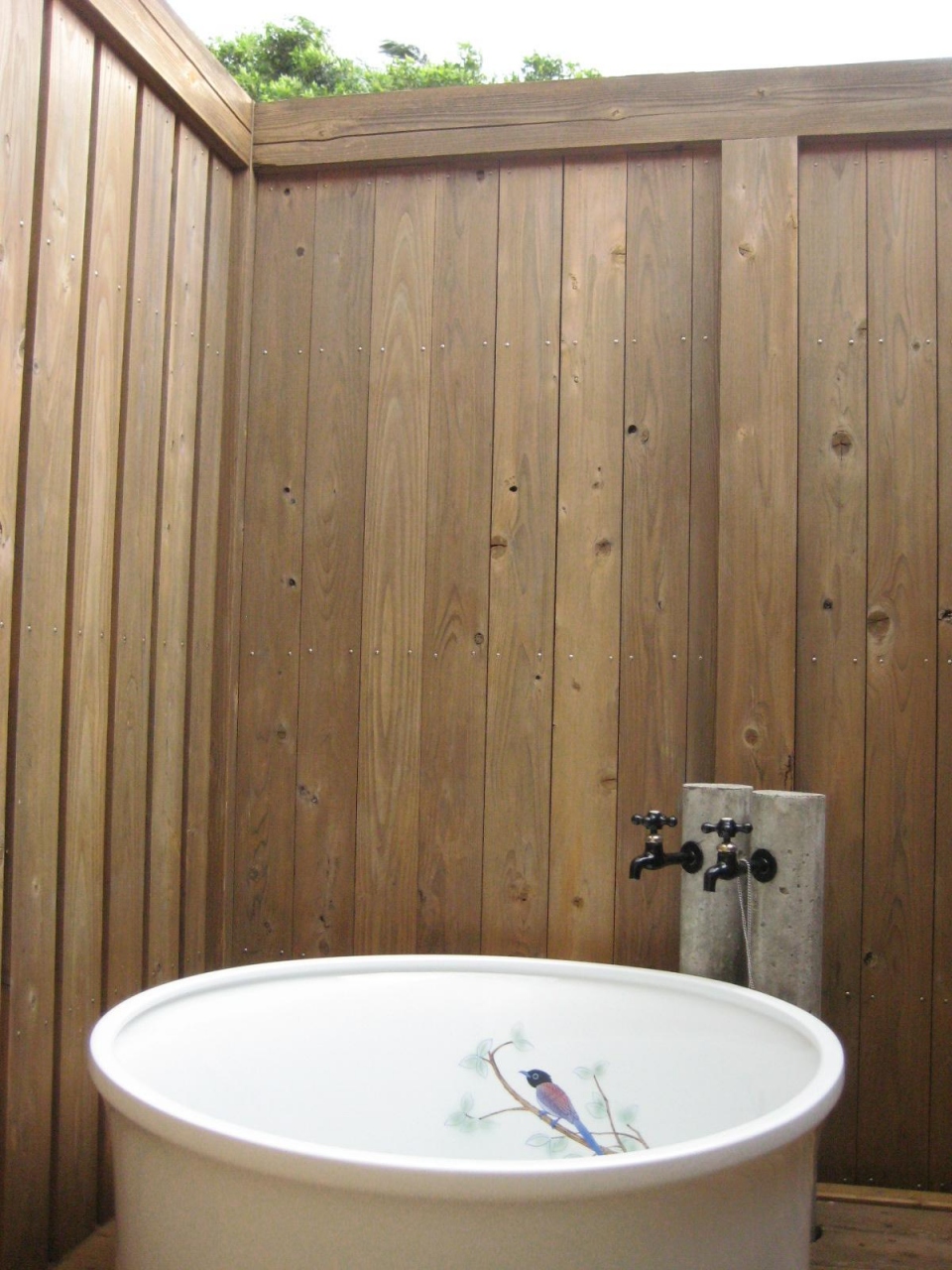 けど、乾燥機付の洗濯機もあり、有田焼の露天風呂、洗面所など設備も満足。