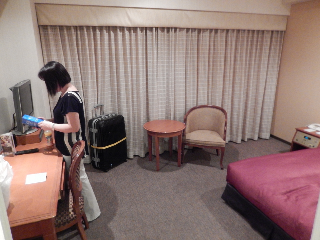 一泊一人が2200円で、ダブルの1ルーム料金は4400円。 しかしながら面積が広く、とても落ち着いた雰囲気の部屋であった。 海外旅行に行くとなると、たいていの場合は荷物が大きくなるが、そういった態勢での宿泊には、とてもありがたい環境である。