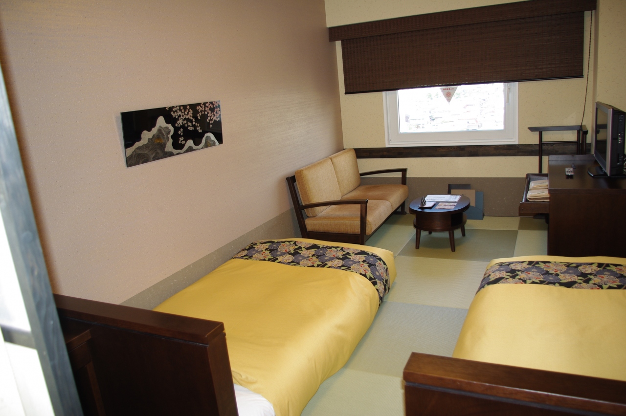 高山駅から歩いて5分の立地条件でありながら和の趣をもったホテルです。外観はシティーホテルですが門をくぐり館内にはいると全館畳張りでいたるところに木組みや梁がはりめぐらされ和のテイストを感じられ心落ち着きます。最上階の展望風呂は高山の市街を見渡せて遠く北アルプスも望めます。チェックアウト後も車は午前中は置いておけるので高山市内散策も歩いていけます。高山に宿泊するならおすすめのホテルです。