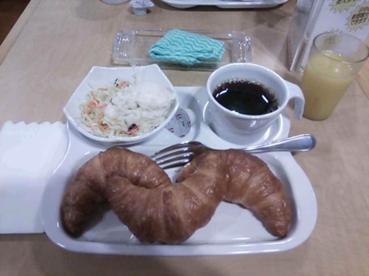 コーヒーにクロワッサン、サラダなどありました。