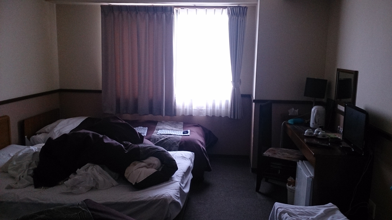 部屋はツインで頼んだのですが、セミダブルサイズのツインと補助ベッドで三人分のスペースがありました。