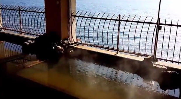 貸切露天風呂は有料ですが、海を見ながらの温泉は最高でした。