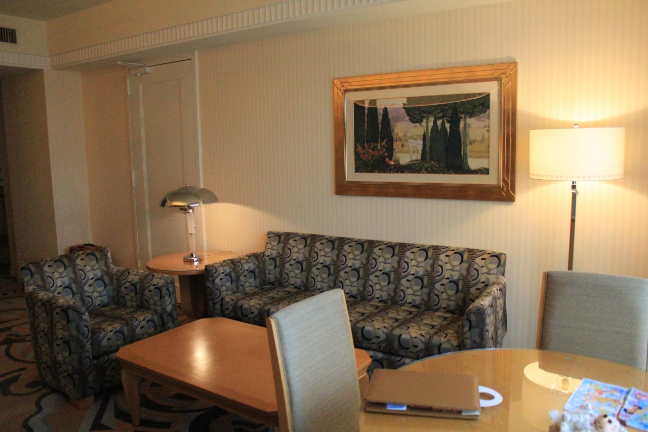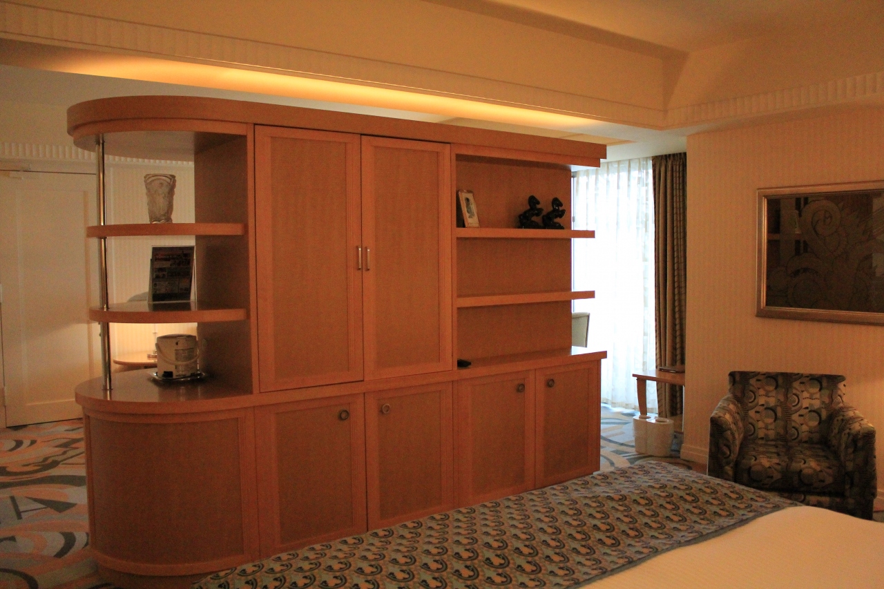 テレビもリビング側とベッド側に一台ずつ備え付けてあり、どちらからでもディズニーチャンネルを楽しめるようになっていた。