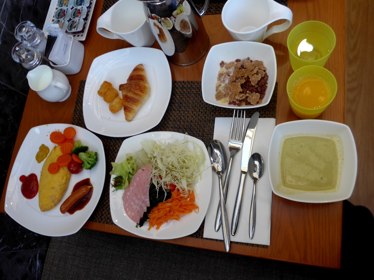 今回はビュフェスタイルの食事になった.食材の種類も多く,オムレツもある.朝食自体は5つ星水準.3年前に辛口の評価をしたが,今回の印象は標準的だ.なんか3年前より全体のサービス良くなった気がするがさだかではない.