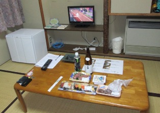 いわゆるウィークリーマンションのような施設である。このときはかなり広い和室を一人で使わせてくれたのであった。テレビも有料放送意外は無料である。浴室はひとつしかないので男女交互に入らなければならないのだが、この宿泊料金で文句は言えないだろう。