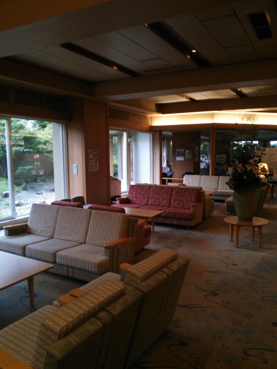とても大きくそびえる建物、入り口の庭園、広いロビー、きれいな旅館で好印象!