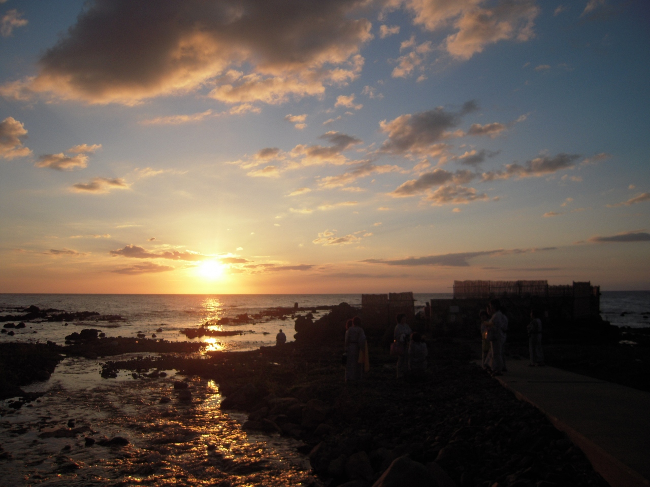 か な り残念でしたが、温泉に入らなくても周りの海岸から綺麗な夕日は見ることができたので満足でした。