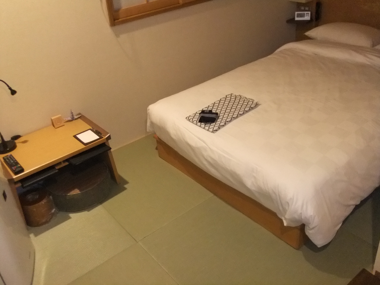 ベッドとの隙間の畳が かろうじてくつろげるスペース!