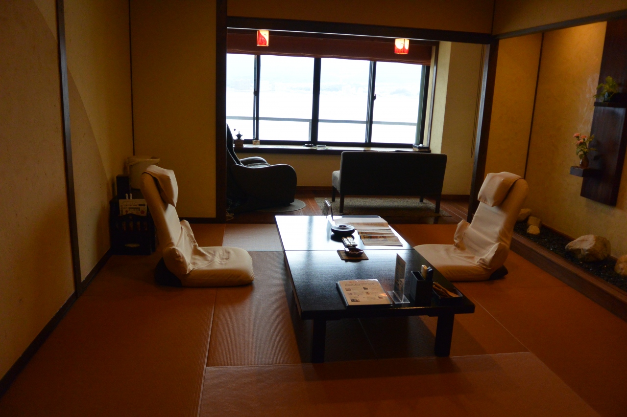 夏休み期間の土曜日に「大人の休日」というプランで宿泊。冷蔵庫の飲み物は無料です。部屋にはマッサージチェア、空気清浄機が置かれてます。窓越しにはカウンターがあり、ソファに座って厳島神社の大鳥居が眺められて、宮島での宿泊の醍醐味が味わえます。夕食は部屋食。料理のタイミング、味、量、全て最高でした!料金的には少し高いかな!?という感じはありましたが、お料理が最高に良かったので満足です。また宮島に行く際には是非泊まりたい宿です。