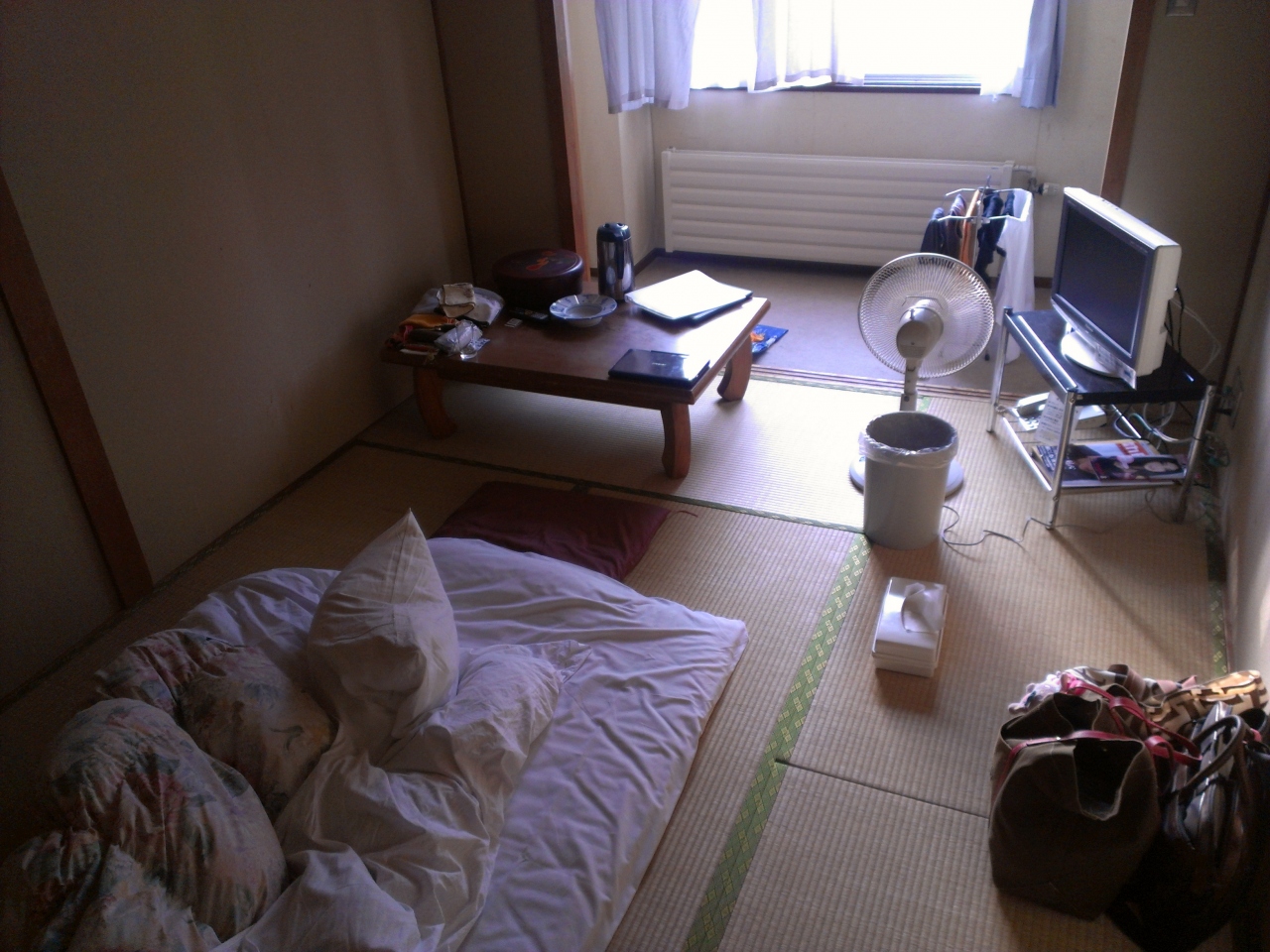温泉は、露天風呂はなくて、天然温泉が入っているのは小さい浴槽ひとつで、ちょっとがっかり。お部屋は、筆者は旧館を利用したが、非常に簡素で、冷蔵庫、冷房はなくて、それに昔の旅館独特のにおいがしっかりしみついていていて、服をひと晩部屋につるしておいたら、しっかりにおいが移ってしまった。お部屋によって値段はかなり変わるので、ネットで予約するときはよく選びましょう。