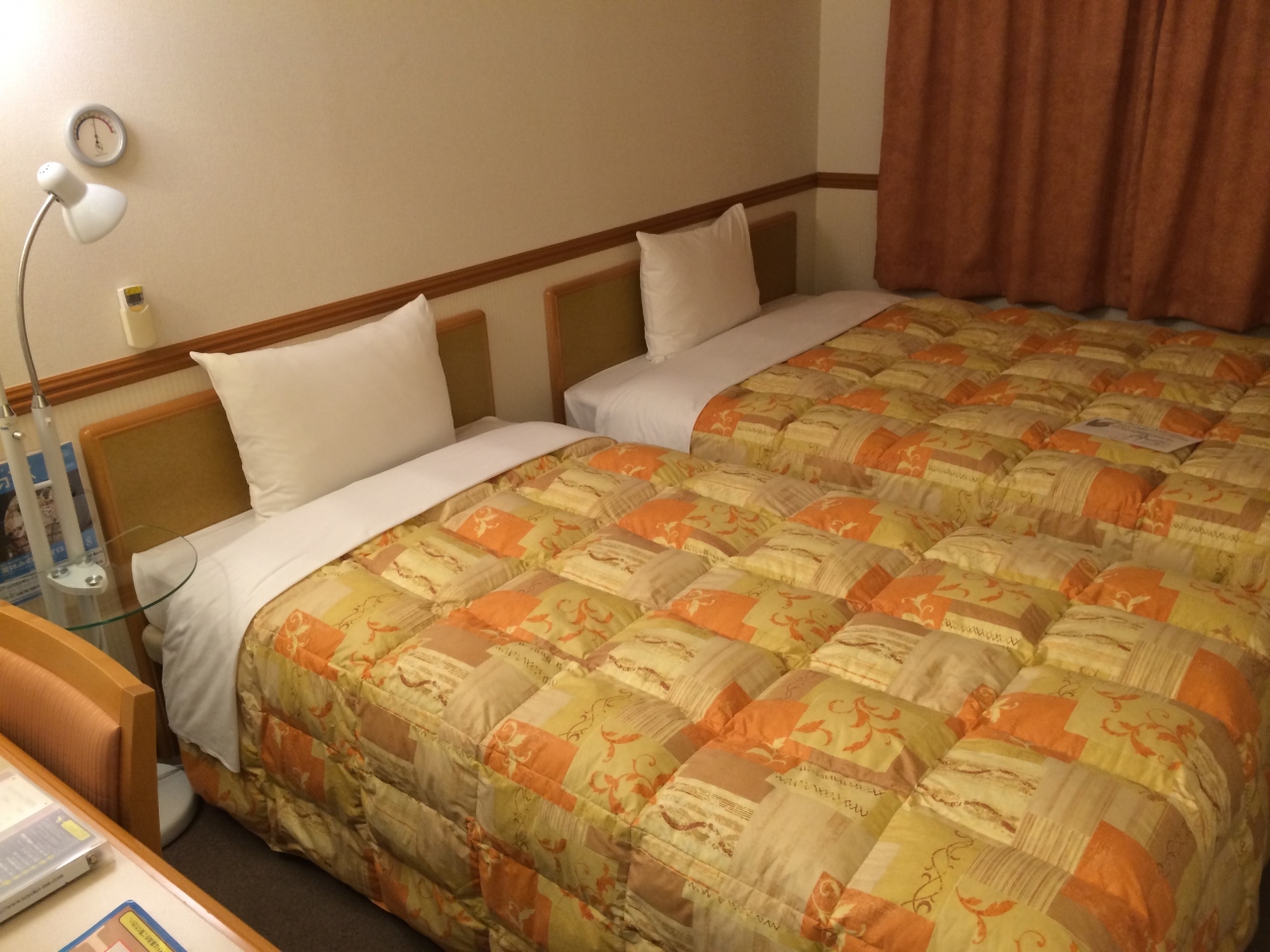 なので、けっこうお安く泊まれたのですが、ツインルームは、かなりせまかった。