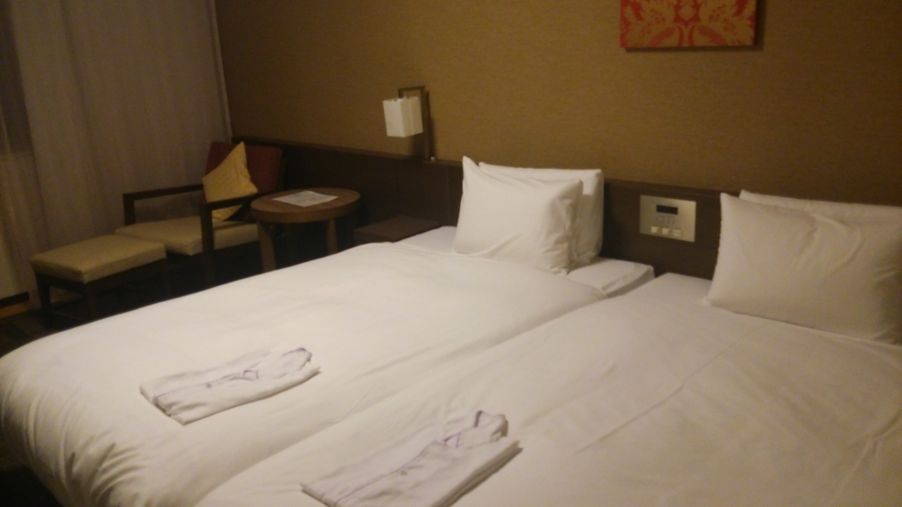 - 部屋は2人には必要十分な広さだが、豪華さはない。