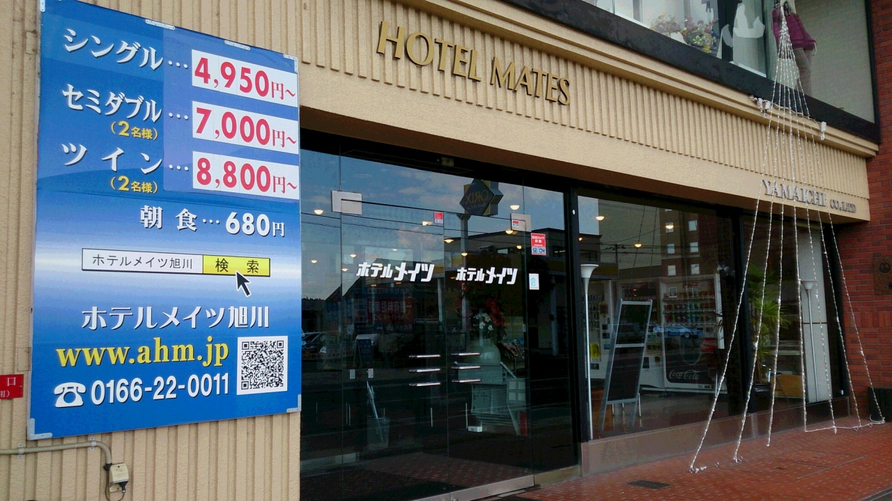 JR旭川駅から歩いて10分かからない場所にあります。ホテルのカンバンより同じビルに入っている洋服店のカンバンの方が目立つのでちょっと分かりづらいかもしれません。中は古くて少し狭いのですが掃除が行き届いていて清潔感はあります。朝食もおいしくいただきました。繁華街も近いので寝るだけと思えば良いホテルです。