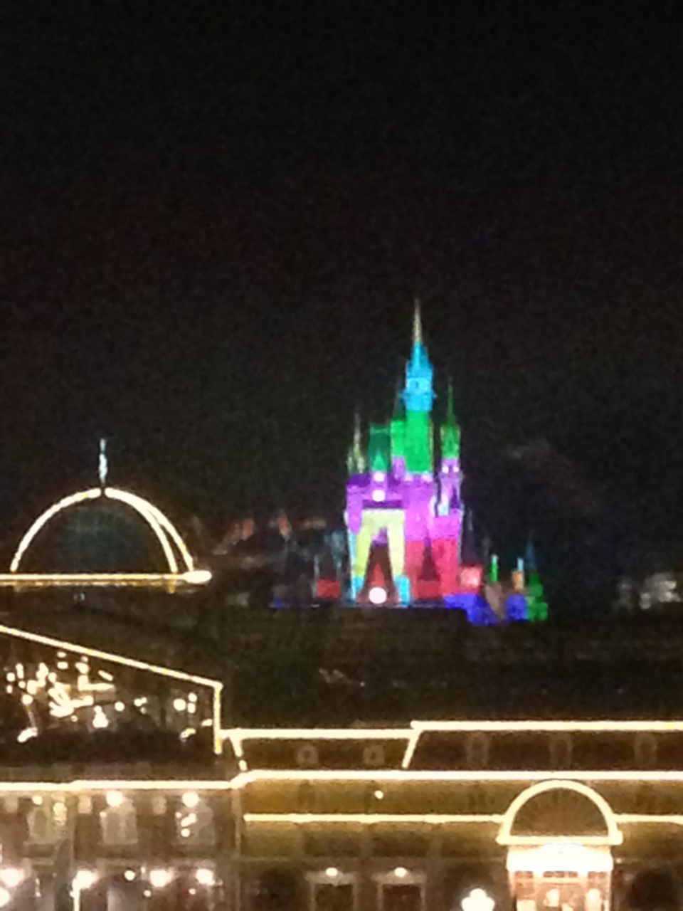 そして!シンデレラ城が見えるお部屋だったのですが、プロジェクションマッピングの予行練習?みたいなのをやっていて、なんとお部屋からそれを鑑賞できました!