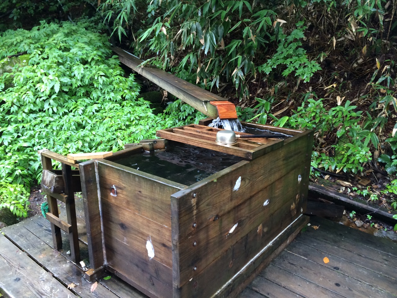 男女別内湯も露天と内湯がありましたが、露天の景色は竹で囲まれていて眺望はありませんでした。外で工事をしているために、囲いが高く設けられているとのことでした。その点は残念でしたが、総木造りの建物で温泉風情がありました。