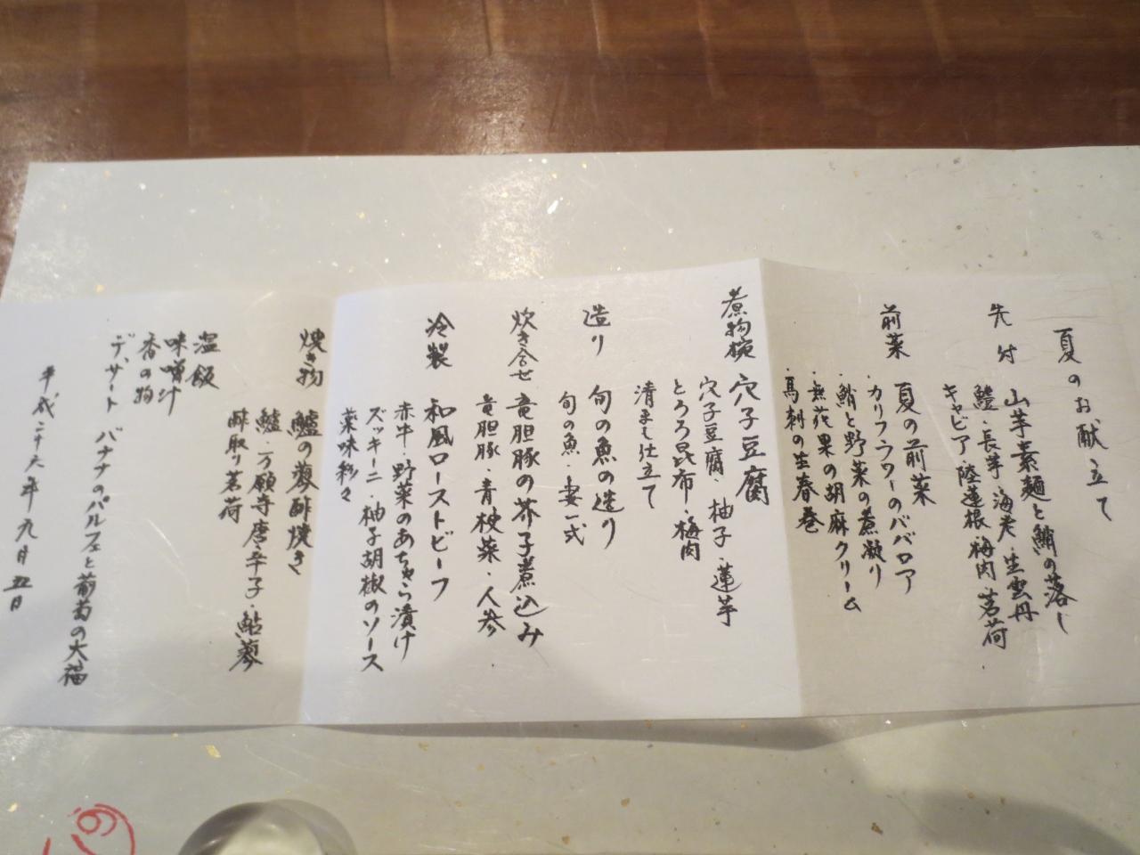 ご飯は、どれもおいしかったのですが、無花果の胡麻クリームと竜胆豚の芥子煮込み、生姜の炊き込みご飯、葡萄の大福が特にお気に入りでした。