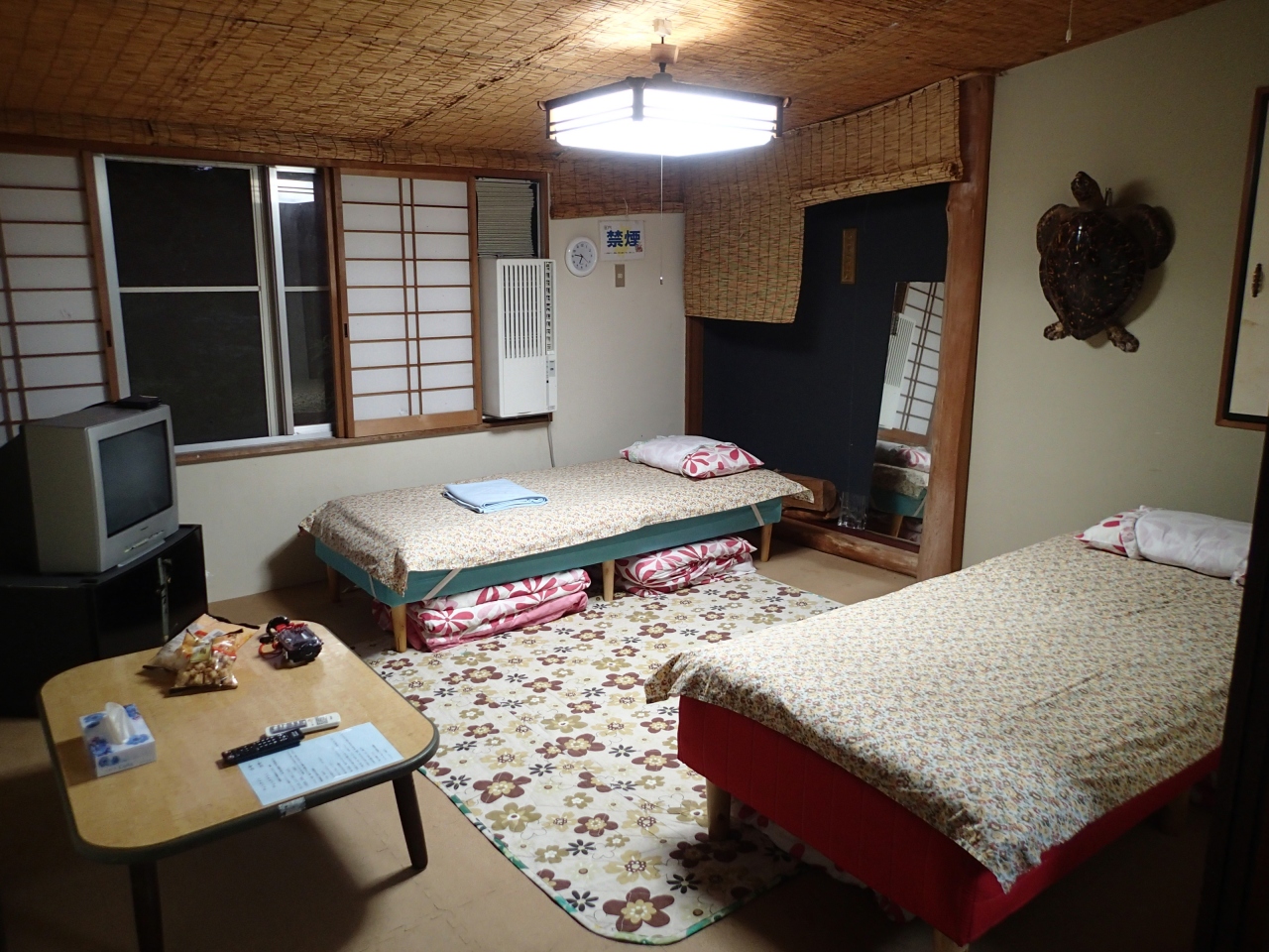 もちろん、クーラーもあり、共用の冷蔵庫もあり、テレビも見れるのでご安心。