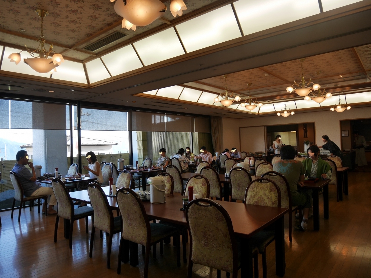 朝食はバイキング形式で、テーブル席とお座敷が選べるのがウレシイです。おかずも種類が豊富で楽しめました。