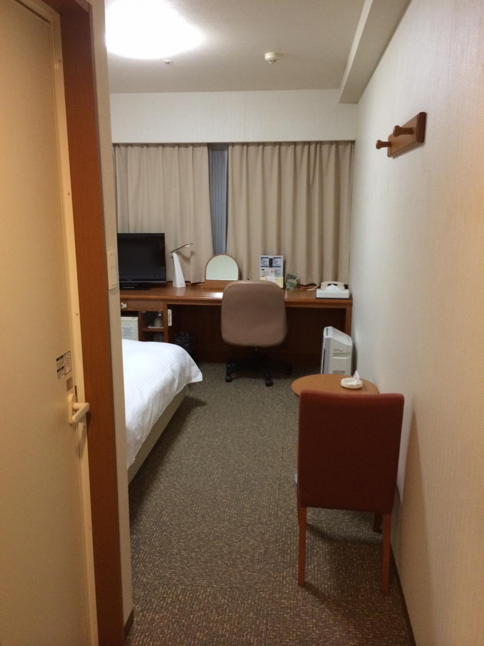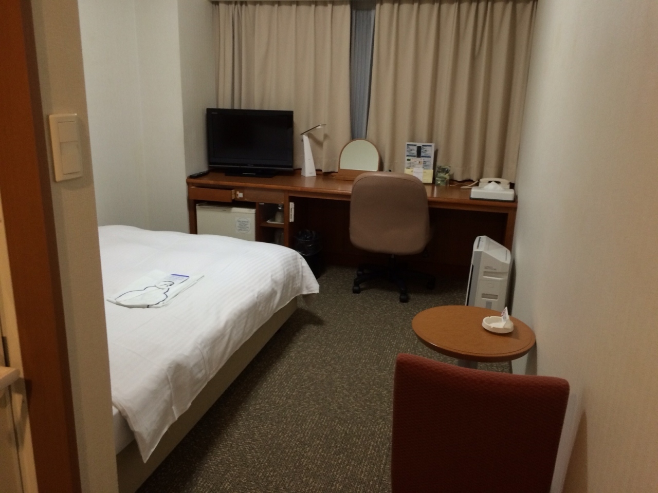 普通のビジネスホテルと比べ比較的ゆったりとした室内。