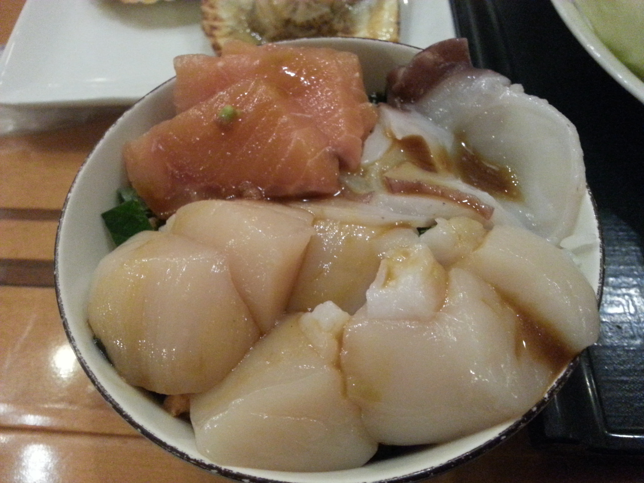 青森に来て食べて見たかったのっけ丼。入り口の窓口で食券を買い、御飯をよそってもらい市場を廻って自分の気に入ったネタをのっけて貰います。一口食べて分かるこの違い。... もっと見る