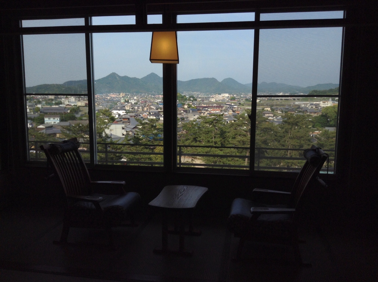 モダンな空間でチェックイン後は純和風のお部屋へ。讃岐平野を一望できる気持ちのよいお部屋でした。