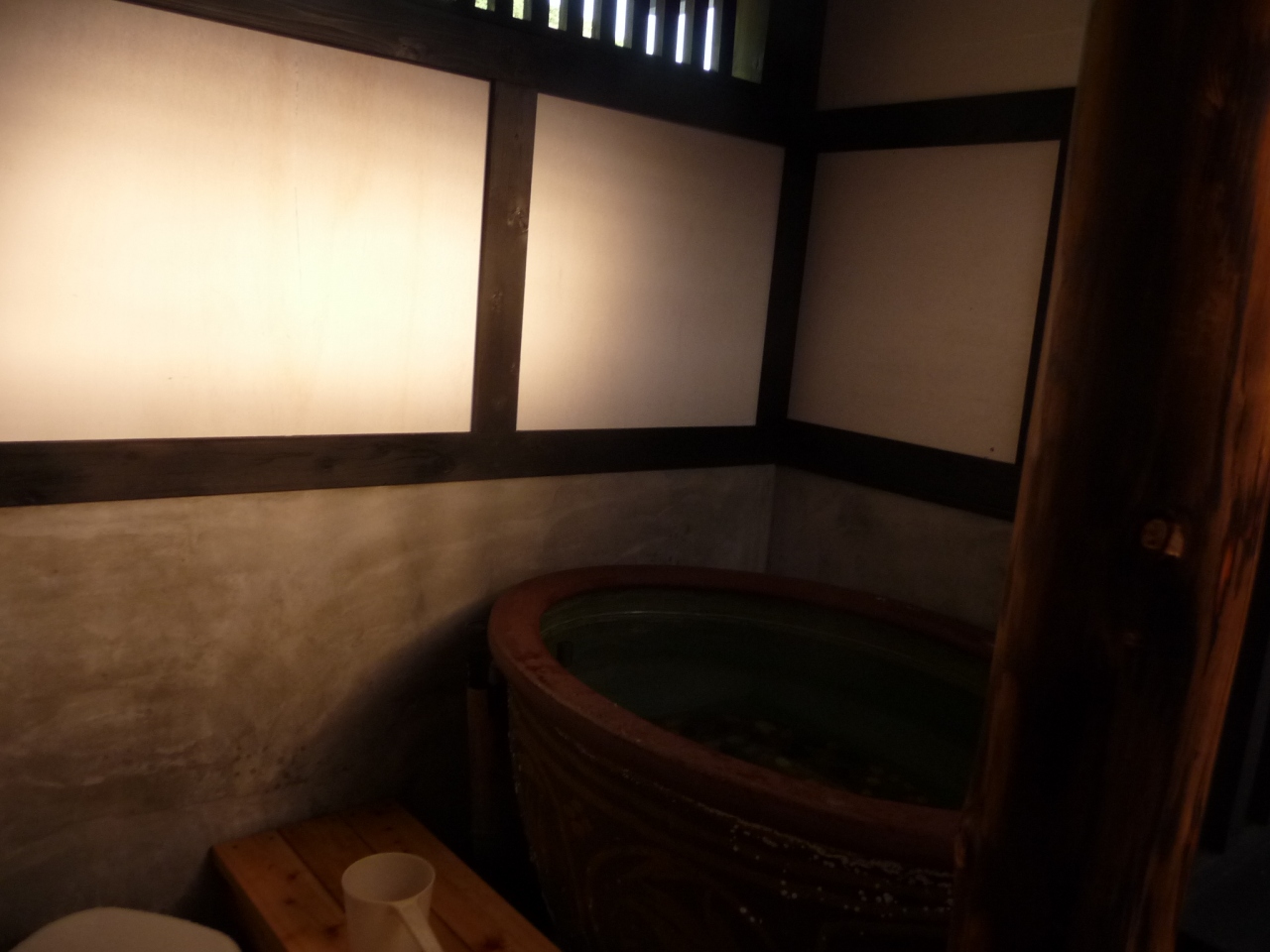 古民家を意識した部屋ですが、裏にはずしたガラスが置かれていたりして・・壊れたサッシがほったらかされていて、ちょっと興ざめでした。食事処も薄暗いので、せっかくのごちそうが色あせて見えるのが残念な気がしました。